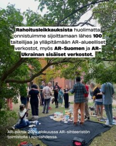 Merkittävistä rahoitusleikkauksista huolimatta onnistuimme ylläpitämään ja kehittämään AR-verkostoja, sekä sijoittamaan melkein sata taiteilijaa ympäri maailmaa.