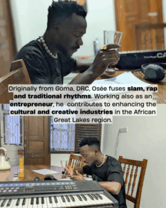 Osée has developed a form of expression that fuses slam, rap and traditional rhythms. His artistic work is part of a broader approach to mobilization that recognises the power of collective memory and the construction of a shared cultural imagination. He has also contributed to enhancing the cultural and creative industries in the African Great Lakes region through his entrepreneurial work.