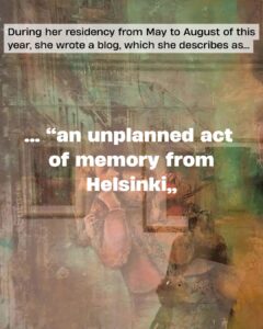 Hayfa writes “reflections and stories about art that resist silence and connect across borders”. Her journal-like blog entries tell about life and death, sorrow and joy, Helsinki and Tunisia. She depicts her life in this city of “the distant North”, the foreignness of it, but also the similarities and familiarities between her life during the residency and her life back home.