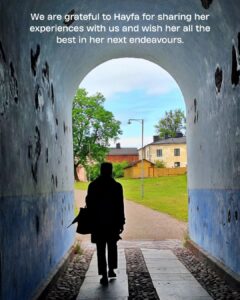 We were delighted to welcome Hayfa Dhouib, a Tunisian independent journalist and a researcher of political science, as the first Artists at Risk (AR) Human Rights Defender (HRD) pilot programme resident earlier this year. During her three-month residency, she was writing a blog, which she describes as “an unplanned act of memory from Helsinki”.