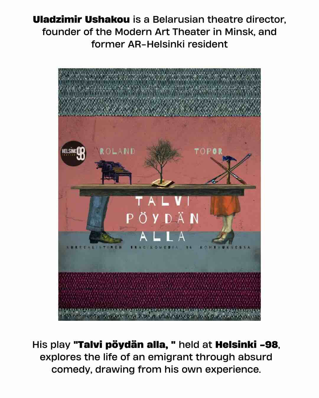 ← The play “Winter Under the Table” in Helsingin Sanomat & Laura Kytölä – Uladzimir Ushakou’s escape from Belarus to Helsinki via Ukraine