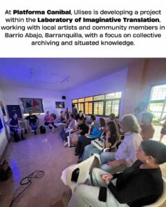 Plataforma Caníbal is a Barranquilla-based residency and laboratory that uses community-based practices to critically engage with the landscape and historical memory of the Colombian Caribbean, offering a creative sanctuary for regional artists. We warmly welcome Plataforma Caníbal as they join the AR-Network! Here, Ulises is developing a project within the Laboratory of Imaginative Translation, working with local artists and community members in Barrio Abajo, Barranquilla, with a focus on collective archiving and situated knowledge.