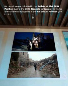 He has since participated in the Artists at Risk (AR) Pavilion during the 2022 Biennale in Venice. His works are currently showcased in the AR Virtual Pavilion (link in bio!).