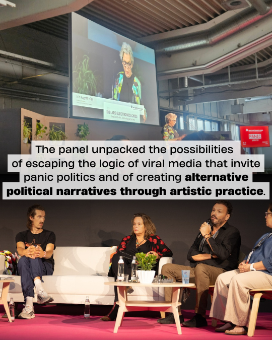 ← Marita Muukkonen and Ivor Stodolsky, Artists at Risk (AR)’s Co-Directors, at Ars Electronica Festival 2025