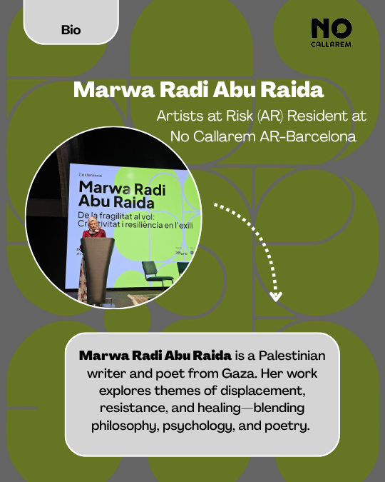 ← Palestinian writer Marwa Abu Raida and co-directors Ivor Stodolsky and Marita Muukkonen at Nodes Barcelona